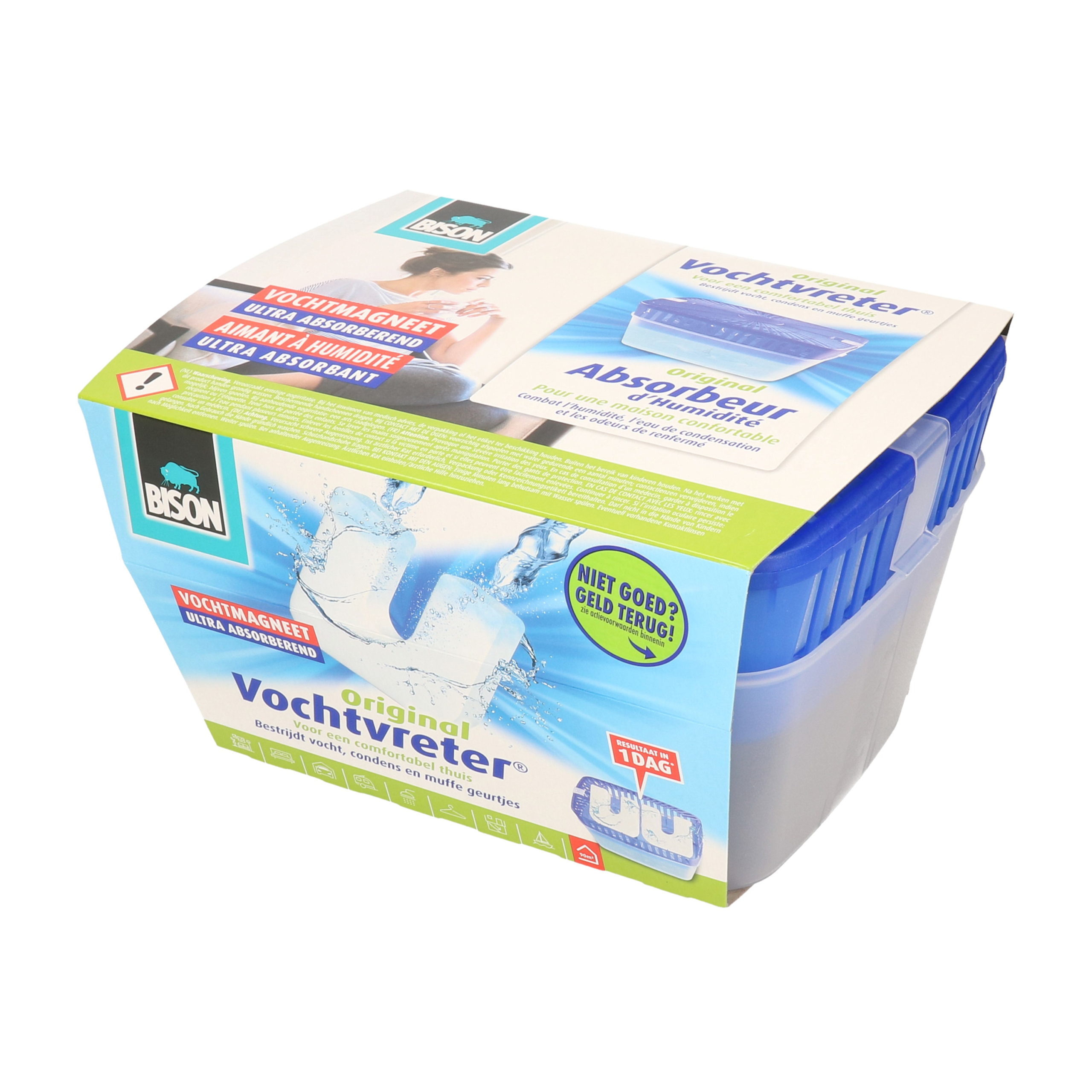 Vochtvreter tegen schimmelvorming bij een hoge luchtvochtigheid. Bestrijdt condens, vocht en geurtjes in ruimtes met weinig of geen ventilatie. Ideaal voor de kelder, garage en zelfs voor de camper of in de auto. De inhoud van de vochtvanger is 900 gram. Merk: Bison.